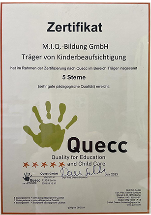 » M.I.Q.-Bildung bietet 2 kostenlose Kinderbetreuungen für all unsere Teilnehmer im Deutschkurs an. Hierfür ist M.I.Q. vom BAMF und Senat Berlin zertifiziert.